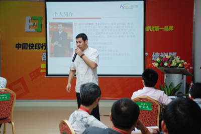 5月24日,深圳的陰雨天氣,并未影響來自全國各地快印行業(yè)學員的熱情,大家早早簽到入場。9點準時舉行了隆重而簡短的開班儀式。主持人宣布由印聯(lián)傳媒主辦的“第179期圖文快印企業(yè)‘管理精英實戰(zhàn)’培訓班”,正式在深圳互聯(lián)網(wǎng)產(chǎn)業(yè)園拉開了序幕。 主講牛云先生是快印行業(yè)資深人士、中國快印行業(yè)協(xié)會創(chuàng)會會長,同時也是深圳市電子商務(wù)協(xié)會副會長、深圳市營銷協(xié)會副會長、深圳市企業(yè)經(jīng)營戰(zhàn)略研究會名譽副會長。