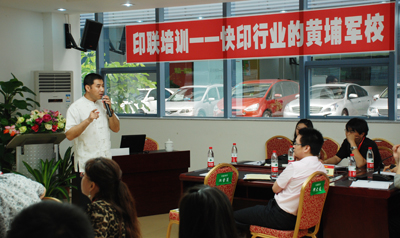 現(xiàn)場學員認真聽取牛云先生對快印行業(yè)現(xiàn)狀的分析,針對目前快印行業(yè)發(fā)展所遇瓶頸問題進行精辟的剖析,并獲得全場學員的認可。現(xiàn)場學習氣氛高漲,大家就自身在快印事業(yè)發(fā)展中遇到的問題、想法與專家進行了交流。茶話式的學習環(huán)境,讓整個培訓過程在一個輕松良好的氛圍里進行。
