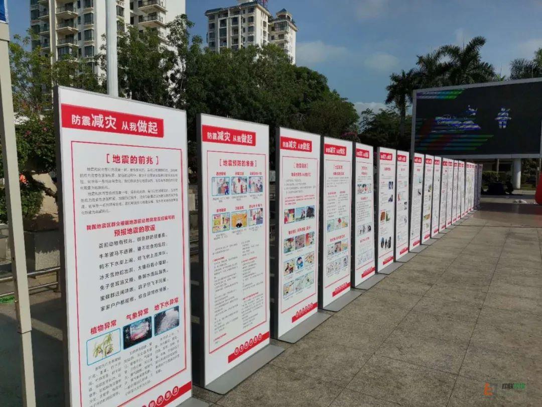 比如下面這個防震減災(zāi)的宣傳展板,近20塊展板,密密麻麻,雖然圖文并茂,但是也僅限于文字和圖片,很少有市民能夠耐心地看完,特別是夏天來了,更沒有人愿意長時間站在太陽底下閱讀,那這些防震減災(zāi)的宣傳展板在一定程度上就變成了“擺設(shè)”。