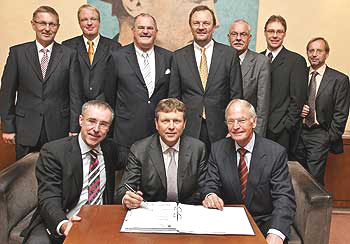 曼羅蘭董事會主席芬伯納先生(右一)與公司高層展會合影
